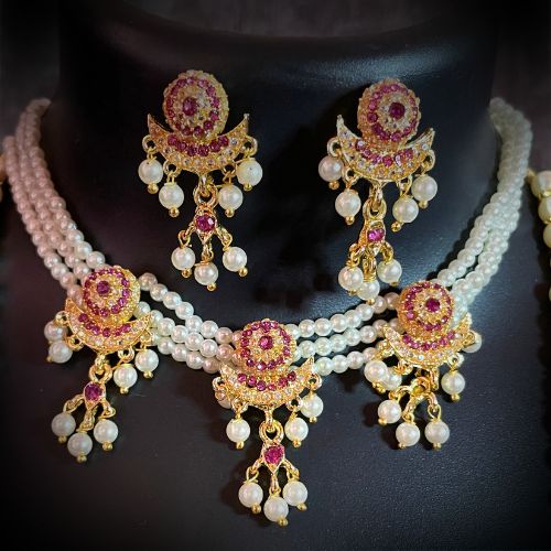 Regal Pearl & Stone-Studded Artificial Necklace Set