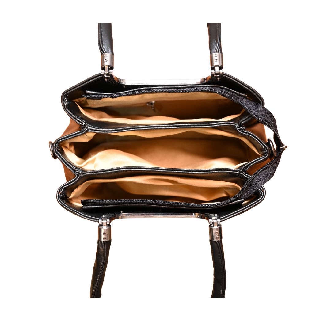 Designed with premium quality synthetic leather. The three main compartments provided with a secret zip pocket inside and a small zip pocket on backside of the bag. Plain design reflects urban look of the bag, SAKHI can comfortably carry it on party and festive occasions. The bag is designed to make SAKHI's appearance impressive everywhere.