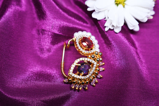 Nath Rangoli Spark – Ruby & Amethyst Crystal Bridal Nath