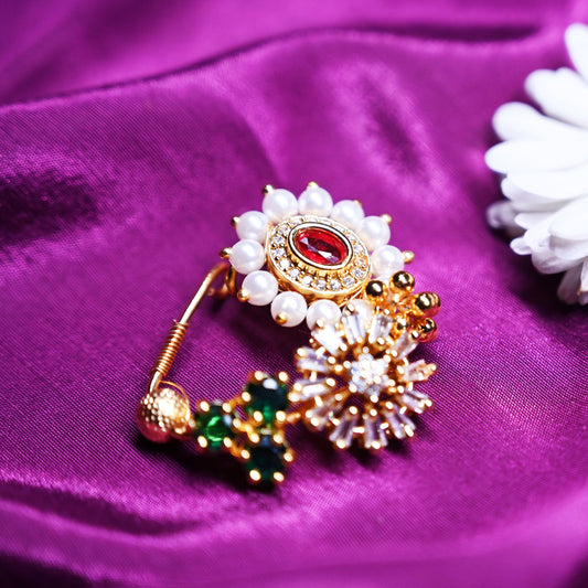 Nath Jijai Royale – Ruby & Pearl Maharashtrian Statement Nath